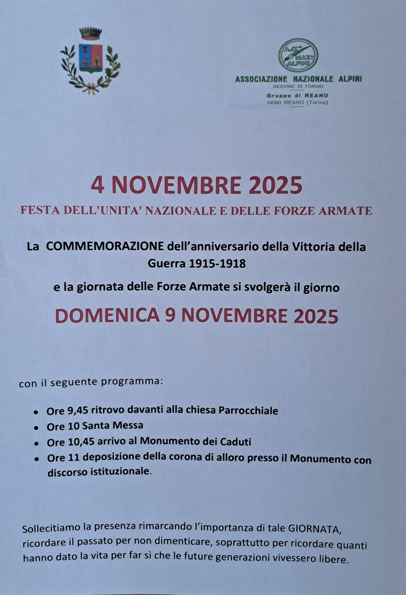 COMMEMORAZIONE dell' anniversario della Vittoria Guerra 1915-18 e Forze Armate si terrà domenica 9 Novembre