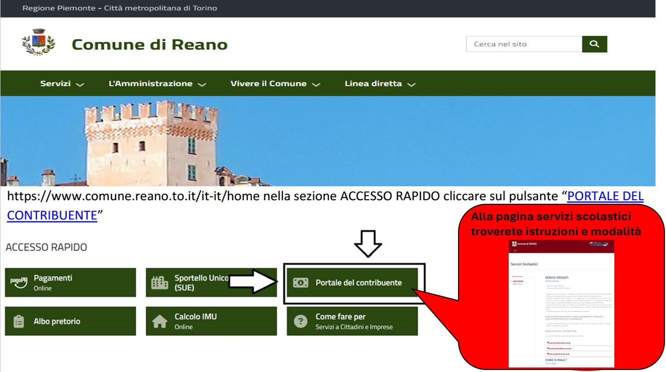 utilizzando l' APP smartcom o il portale del contribuente sul sito del COMUNE di REANO.