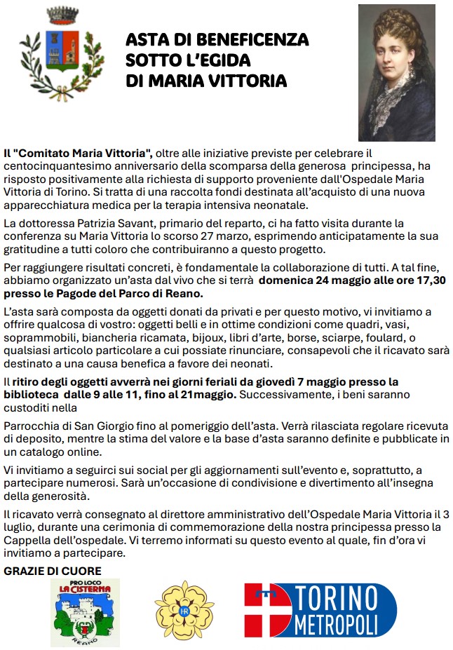 ASTA DI BENEFICENZA SOTTO L’EGIDA DI MARIA VITTORIA
